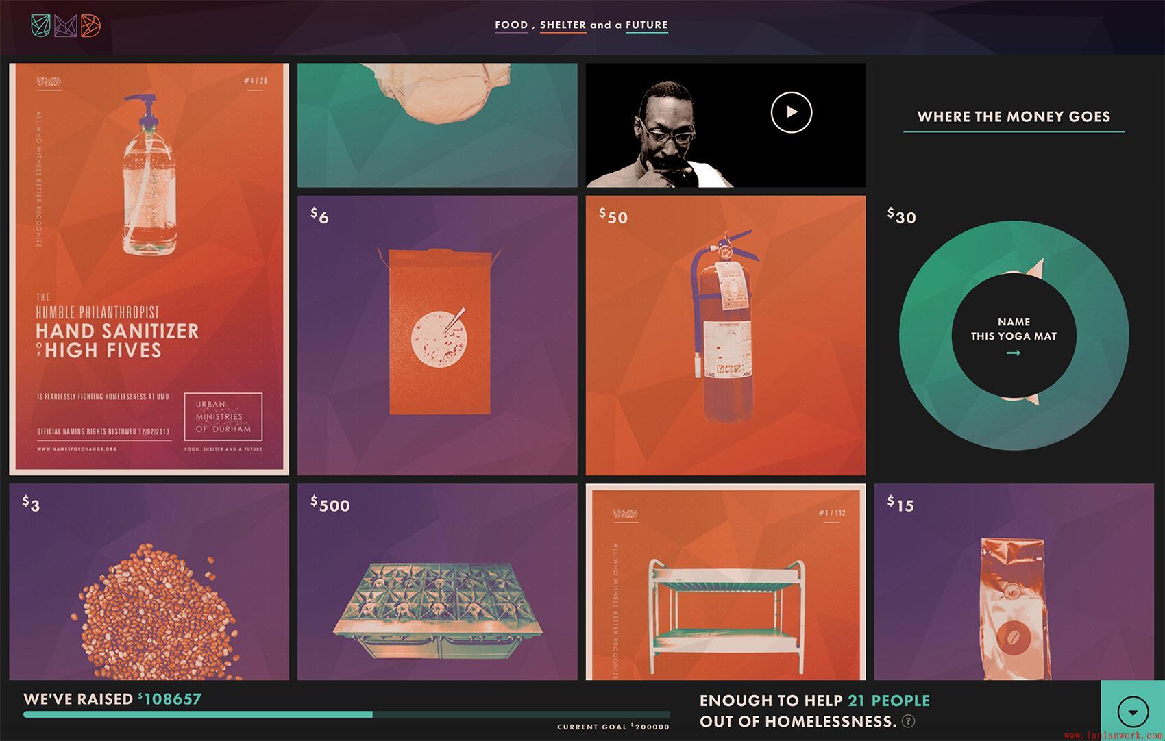 然而,所選擇的音調(diào)有助于克服該站點意義的潛在困難之一。為襪子或衛(wèi)生棉條等日常用品籌款并不足以讓自己出售,因此該網(wǎng)站的激進圖形基調(diào)提高了日常用品的感知價值,同時建立了必要的基礎(chǔ)組織結(jié)構(gòu)。