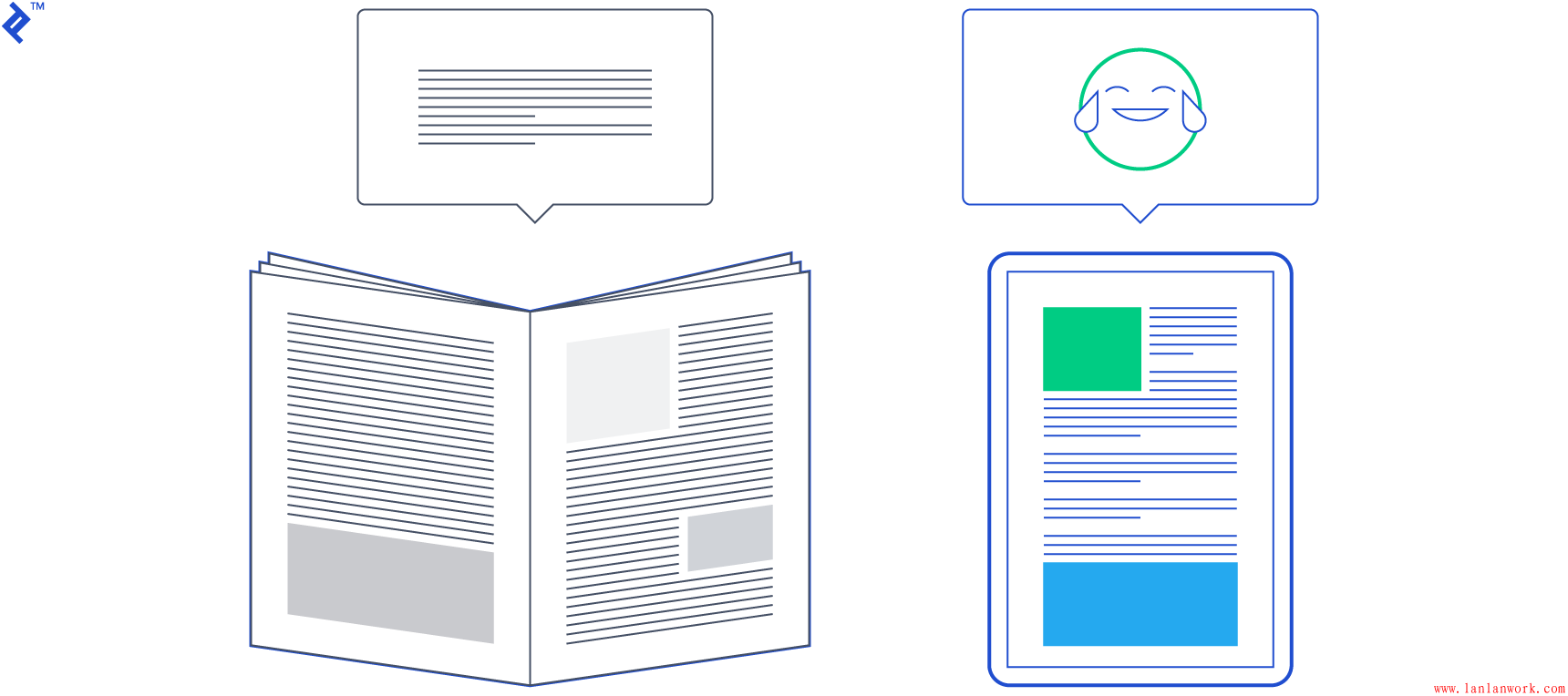 報紙必須迅速調(diào)整他們的設(shè)計以適應(yīng)新技術(shù)。其他內(nèi)容產(chǎn)業(yè)也紛紛效仿。