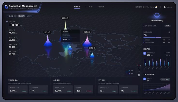 • 情景化與任務(wù)導(dǎo)向 界面設(shè)計根據(jù)用戶任務(wù)和場景調(diào)整數(shù)據(jù)呈現(xiàn)方式,例如金融分析、智能制造或健康監(jiān)測的數(shù)據(jù)儀表盤設(shè)計均有所不同。