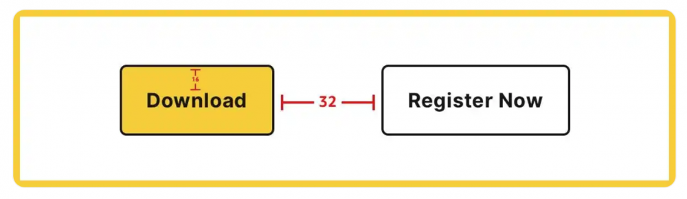 在上圖的案例中,設(shè)計(jì)師盡可能使用 8 的倍數(shù)來定義所有的設(shè)計(jì)參數(shù),包括按鈕的長寬尺寸、按鈕的內(nèi)邊距(Download距離按鈕頂部的內(nèi)邊距)、按鈕和按鈕的間距等。8 點(diǎn)網(wǎng)格可以進(jìn)一步降低設(shè)計(jì)師的決策難度,提升設(shè)計(jì)效率。