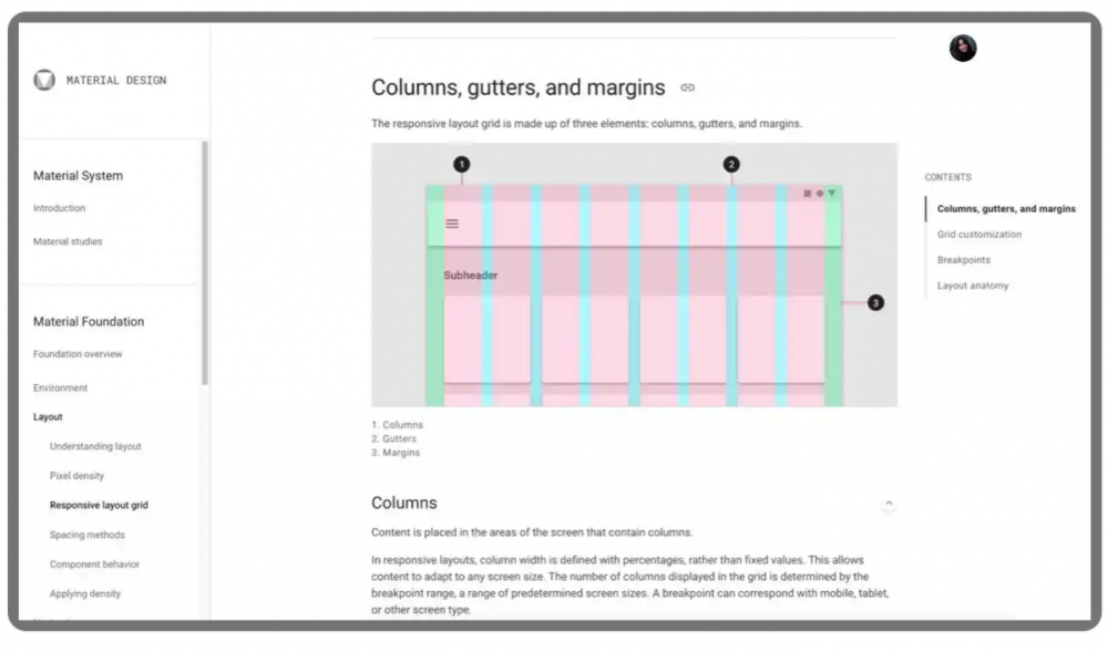 Material Design的柵格布局是一種響應(yīng)式設(shè)計(jì)系統(tǒng),旨在確保用戶界面在不同設(shè)備和屏幕尺寸上的一致性和靈活性。它主要基于12列的柵格系統(tǒng),允許設(shè)計(jì)師和開發(fā)者在布局中有效地組織內(nèi)容。